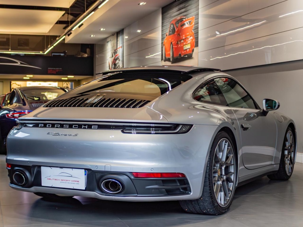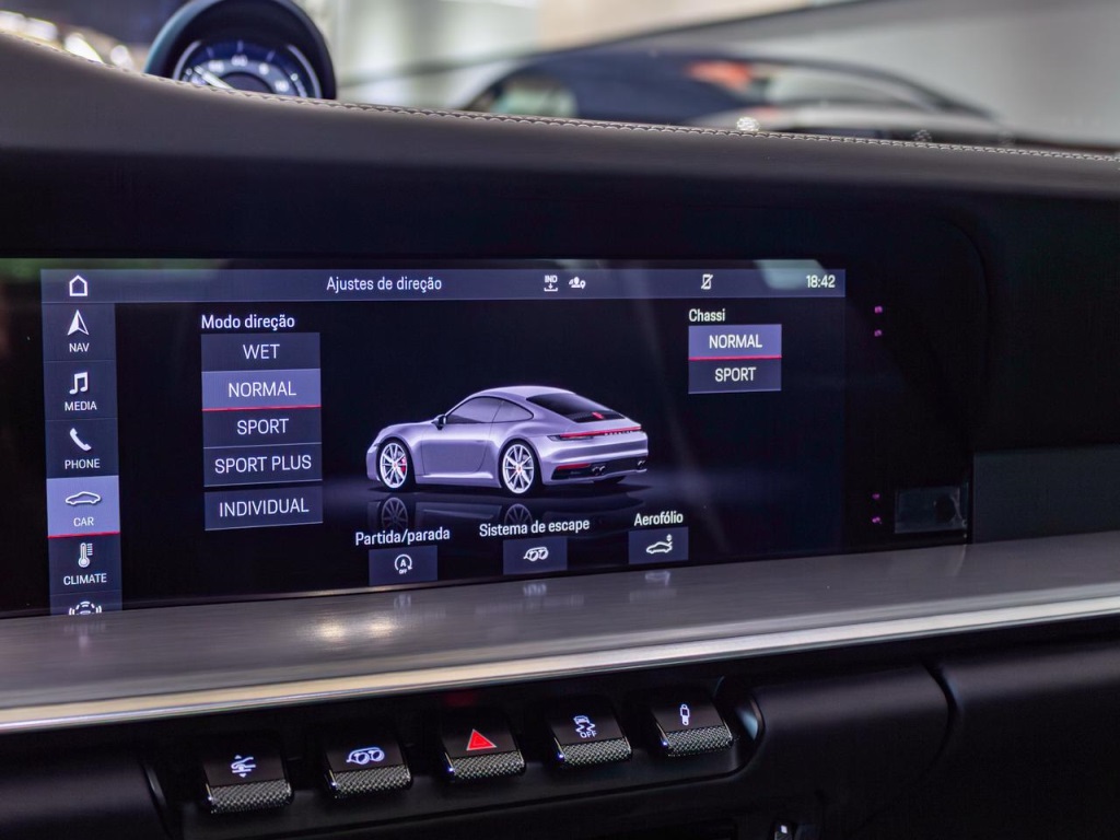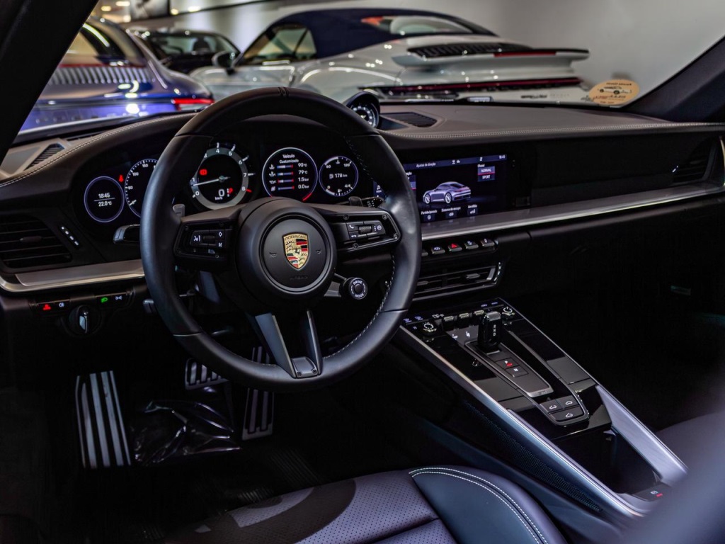 Descrição911 Carrera SPrata GT metálicoInterior em couro preto com costuras gizTanque de 90LEixo traseiro direcionalSuspensão rebaixada em 10 mm, incluindo PASMPinças de freio em preto brilhanteCubos de roda com o escudo Porsche coloridoVolante sport GT em couroSistema de elevação do eixo dianteiroEscudo Porsche gravado nos encostos de cabeçaPacote de interior em alumínio escovadoGrelhas das entradas de ar na tampa traseira pintadasContagiros em BrancoFaróis principais em LED matrix, incluindo Porsche Dynamic LLanternas traseiras ExclusiveCintos de segurança em CrayonPedais e descanso para o pé em alumínioBancos elétricos plus, 4 vias de ajustes elétricosMolduras das janelas em preto brilhanteIluminação ambiente